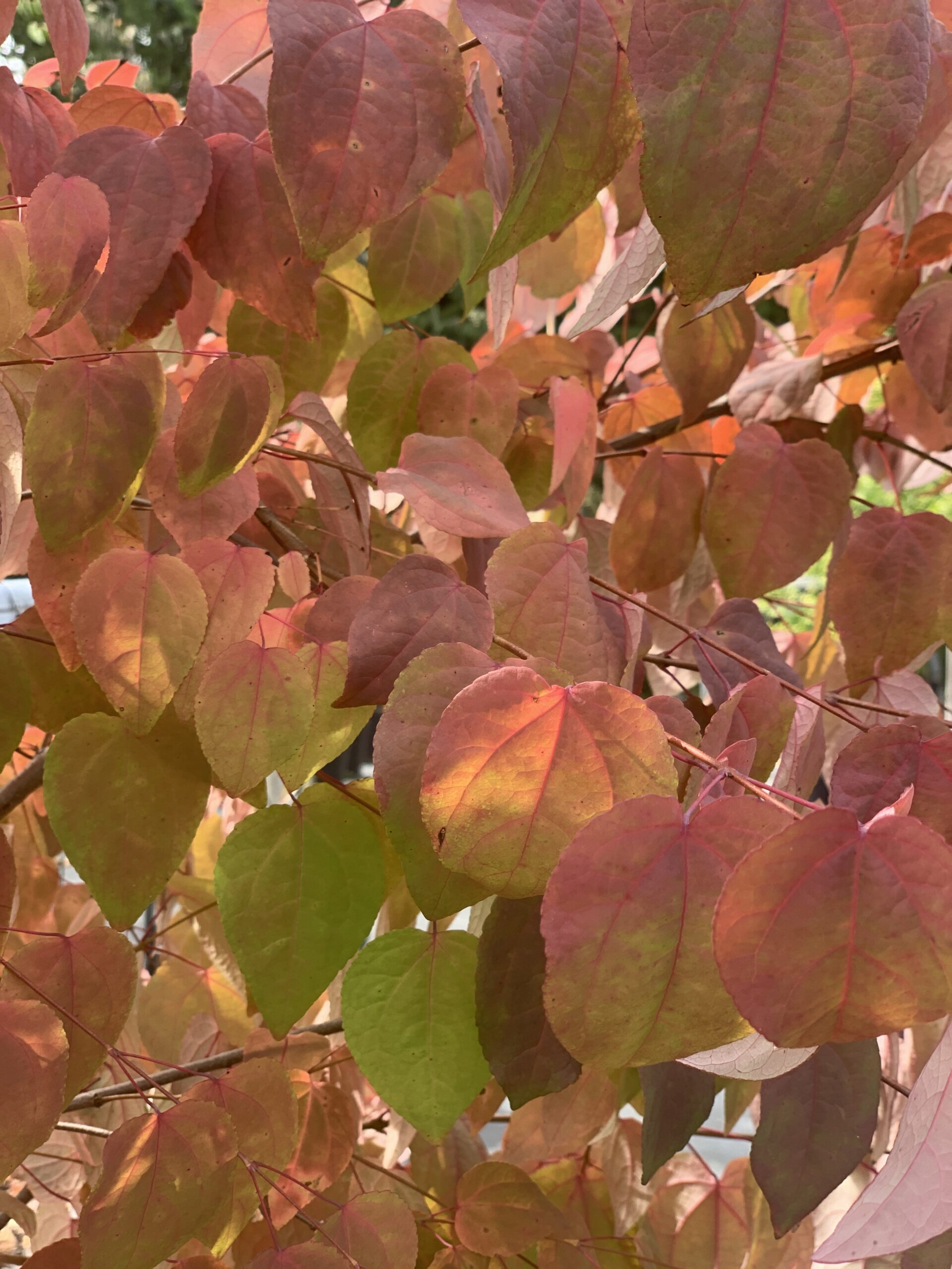 Feuillage : feuilles caduques, vert tendre au printemps, jaune/orangé/rouge à l’automne